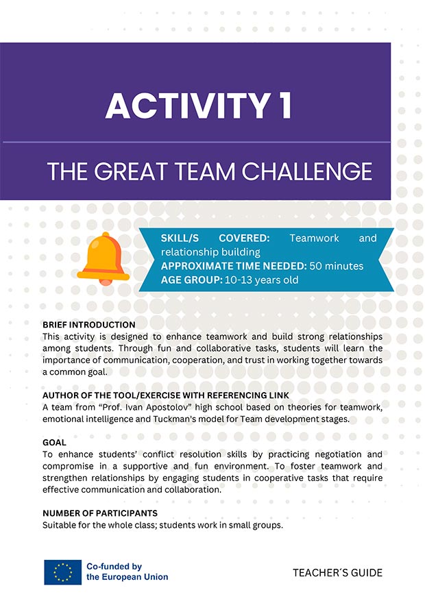 Link: https://www.mygroupguide.com/wp-content/uploads/2019/01/Task-Cards-Conflict-Resolution-Children-1.pdf - Team Bonding Games – The Characteristic Game.
